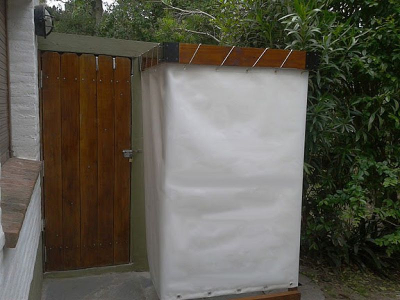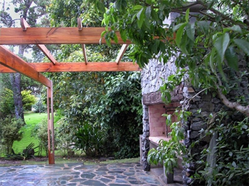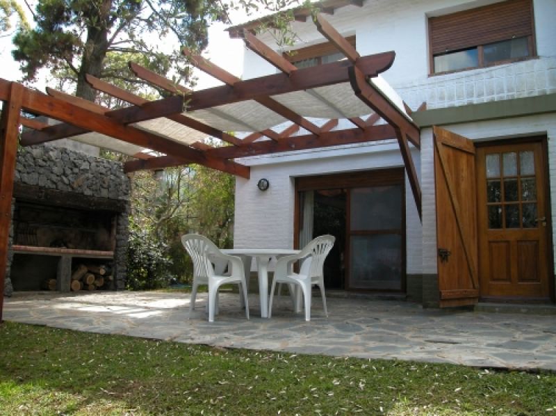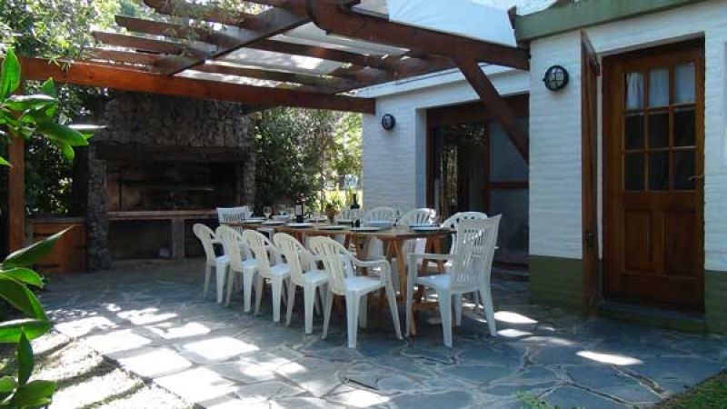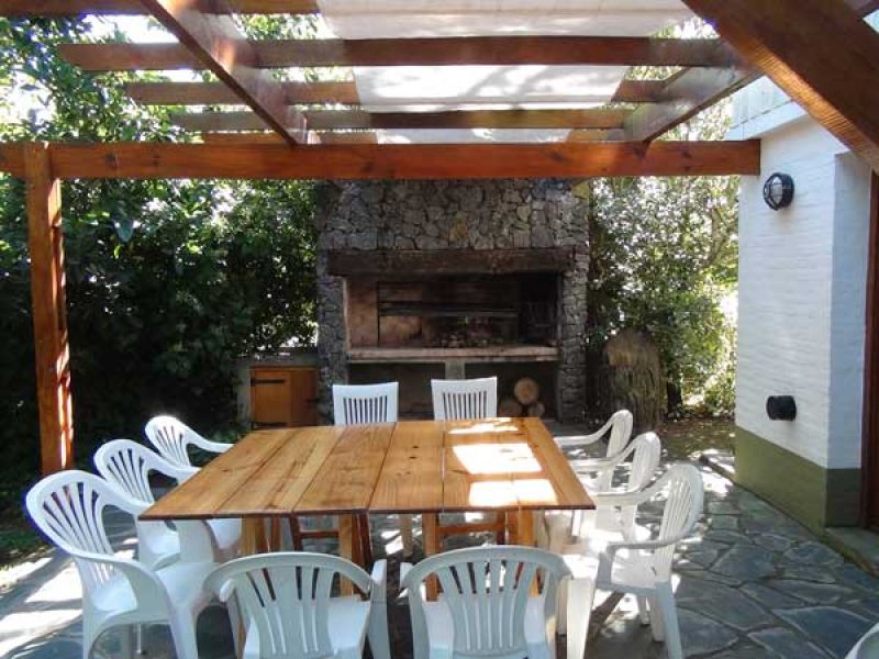 Dos mesas de asado (desarmables), de madera lustrada, de 0,80mx1,50 m de largo cada una, que se pueden poner en forma cuadrada y quedan fantásticas. Hermosa la pérgola de madera con toldilla blanca, junto a la importante parrilla revestida en piedra,con posibilidad de uso con leña ó carbón en un sector y en otro una hornalla a gas, lo que permite hacer algo al wook en la misma parrilla.LUZ EN EL INTERIOR Y EXTERIOR de la parrilla. Junto a esta, una PILETA DE LAVAR para hacer más cómoda la tarea del asador. IMPORTANTE PARRILLA de 1,40m de largo, de hierro enlozada, con cuatro elementos desmontables, uno para pescados, grasera,manija para levar, y un CANASTO PIÑERO de hierro forjado para encender las piñas ó leña al modo uruguayo.