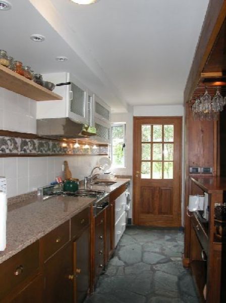 La cocina, bien equipada con microondas y heladera con freezer. Cacerolas de acero inoxidable, olla grande enlozada, guisera y wok, recipientes plásticos, etc. Horno empotrado , purificador y anafe de acero inoxidable. Vajilla de diario y de porcelana blanca, cubiertos de diario y de acero inox, juego de vasos chico y grande y copas de agua, vino, cerveza, licor, y champaña, todo para 12 personas. Importante, además de la canilla de agua fria y caliente, como en todas las casas, con agua que proviene del tanque, en la cocina, instalamos una canilla que provee agua directamente de la red de agua potable, apta para beber y cocinar.