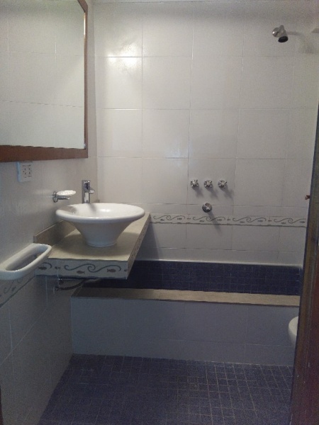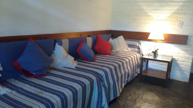 6 DORMITORIOS, 3 baños completos y una ducha exterior con manpara y agua caliente y fría. Camas con buenos colchones, vs. nuevos! todas tienen cubre colchón y colchas lavables,), amplias ventanas con persianas y mosquiteros, techos con hermosa tirantería de madera, ventiladores, amplios placards , espejos, sillas y percheros. Debido a varias consultas, aclaro que los dormitorios NO tienen alfombras (evitando así problemas con ácaros en personas alérgicas y fundamental, por motivos de higiene )