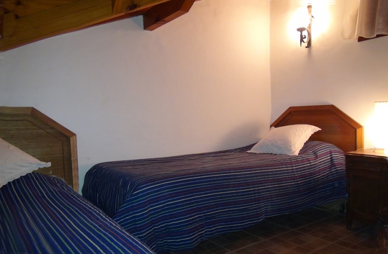 ______*1 dormitorio con dos camas, con ventana y lucarna triangular, hermosa cabreada de madera, y 1 ventilador.