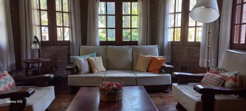 CHALET - PISCINA de 9 x 4 mts - Equipos AIRE ACONDICIONADO en cada dormitorio - Calidad - Está ubicada en barrio absolutamente residencial rodeado por el golf con solo dos calles de acceso, Sobre dos terrenos parquizado - Living y Comedor - 3 Dormitorios (principal toilette) - Playroom - Cochera cubierta - Parrillas (interna y exterior) - 2 Deck Solarium - 2 Pantallas Led TV - Lavarropa automático - Hornos (microonda y eléctrico) más otros electrodomésticos.