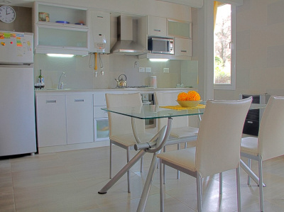 Heladera con Freezer, Microondas, Anafe, Cable, Vidrios de seguridad, TV, Juegos de mesa, Alarma Monitoreada, Tostadora eléctrica, Teléfono para llamadas locales, WI FI; Servicio de mucama (opcional), Gas Natural, Plancha, Agua corriente de red, Luz de emergencia, Electricidad, Iluminación automática exterior, Caja de seguridad, Sommiers, Vajilla completa, Batería de Cocina Completa, Estufa de tiro balanceado, Multiprocesadora, Cafetera, DVD, Placards, Cuna para bebes
