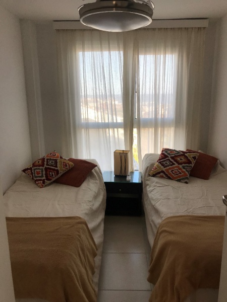 Cocina-comedor totalmente equipada para 6 personas, heladera con freezer, horno electrico y microondas.Living con sofacama de dos plazas mesa ratona, TV LCD con cable y DVD, espectacular ventanal de 4x2m con vista al mar., Split frio calor.Dormitorio principal con sommier de 2 plazas , mesas de luz , placard y tv 21", Split frio calor. Segundo dormitorio con dos sommiers de una plaza , mesa de luz y placard y tv 21" . Ambos dormitorios con vista al mar.Todas las ventanas cuentan con cortinas black out. El edificio posee quincho equipado con parrillas, mesas y sillas; pileta , hidromasaje y solarium; gimnasio y vestuarios; dos ascensores.