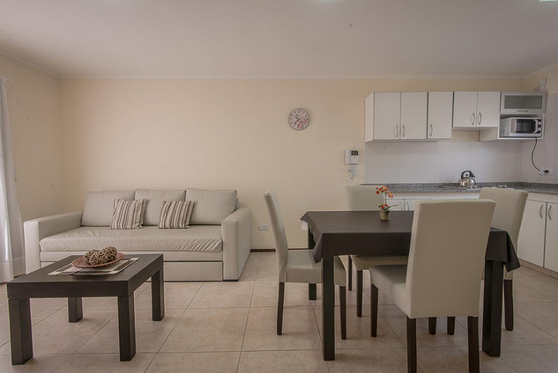 Departamento de dos ambientes muy luminoso, equipado para 4 personas, sommier en la habitación y sofá cama con dos plazas en el living (wi fi propio de la unidad, heladera con freezer, microondas, horno eléctrico, 2 TV led), aire acondicionado en los dos ambientes, baño con hidromasaje, balcón terraza con parrilla y alarma.
