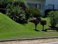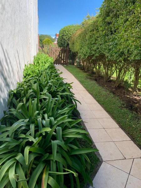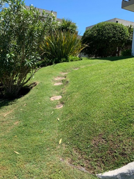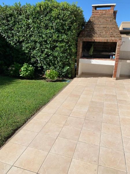 Parrilla Exterior, Juego de sillas para jardin y 3 mesas plásticas (2 rectangulares y 1 redonda), Jardin adelante, lateral y trasero en desnivel.