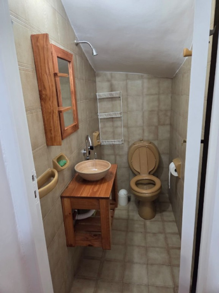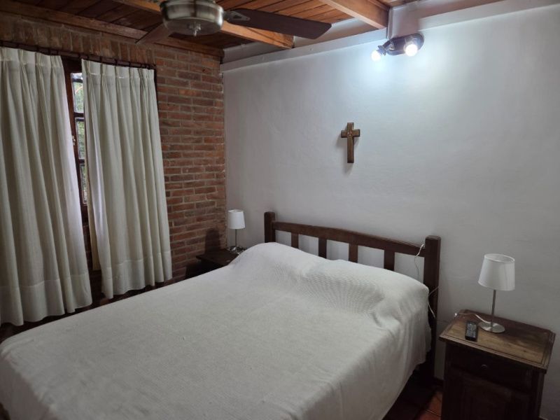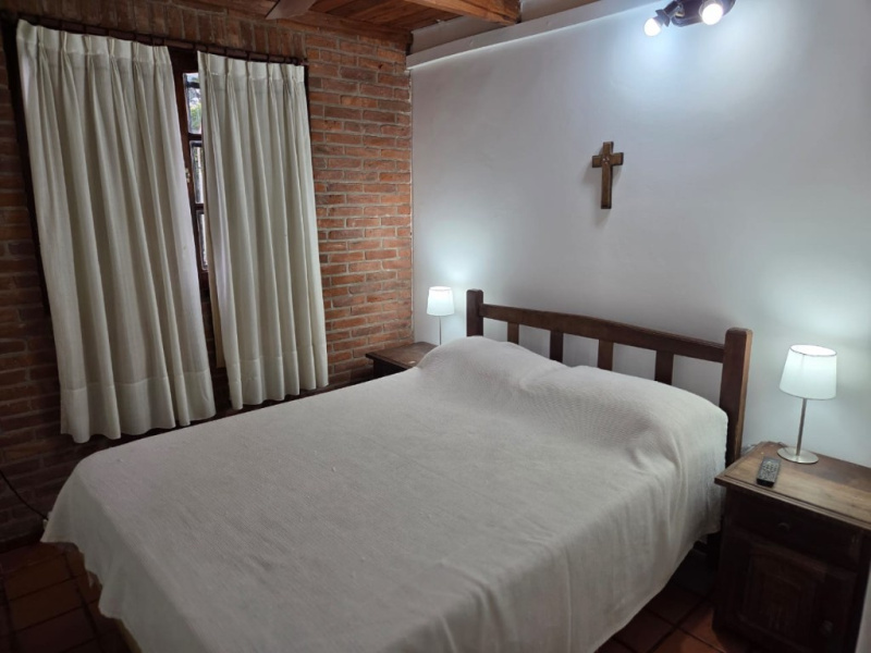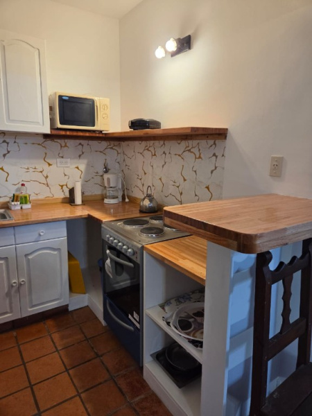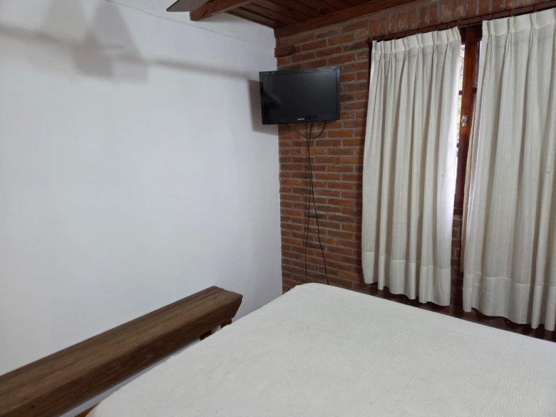-Planta Baja: Living: comedor con mesa, sillas, aparador y sofá cama de algarrobo, TV Smart Android 58" con cable. hogar a leña. Cocina: con entrada de servicio independiente, mesada en "L" con alacenas y barra desayunador. Agua caliente por termitanque eléctrico, heladera con freezer, cocina eléctrica 4 hornallas con horno, horno microondas y cafetera eléctrica. Toilette: con ducha y vanitory. Split frío-calor 4500 frigorías. Wi-fi.