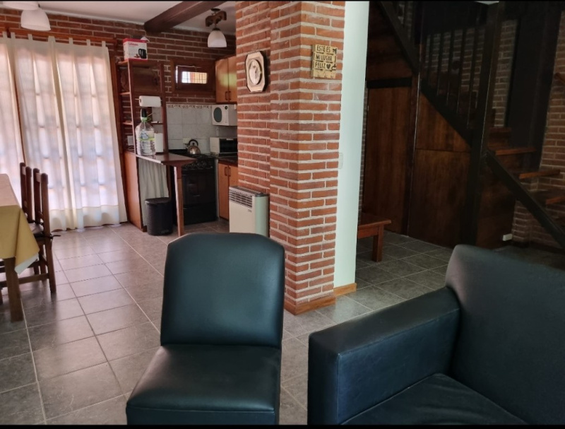 Cuenta con: Heladera , microondas, hornito eléctrico. pava eléctrica, tostadora, vajilla para 12 p., elementos de cocina, mesa y sillas de jardín, lavarropas , tender, termotanque de alta recuperación, tanque cisterna, gas y agua corriente.-