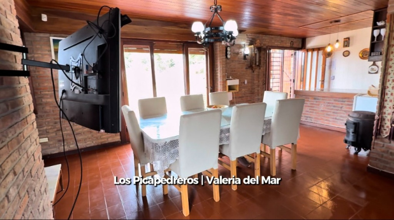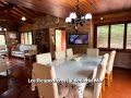 Jardin trasero 6 x 17, doble escalera acceso: entreada por escalera lateral por terraza y escalera principal por deck, aire acondicionado, teléfono y cerco perimetral, Gas Natural, TV Smart en el living, playroom, habitación principal. Estufas, microondas, heladera, freezer, accesorios de cocina, hogar a leña, salamandra a gas. Cuenta con luces de emergencia en caso de corte de luz.