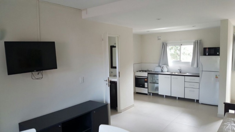 La cocina esta equipada con vajilla completa, microondas, pava eléctrica y cafetera, entre otras cosas.