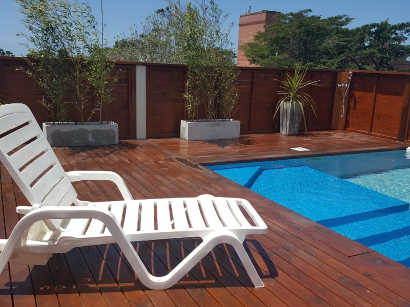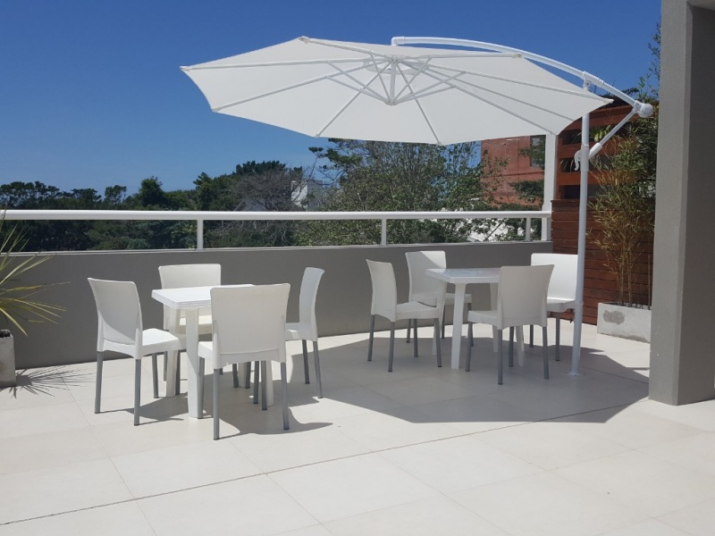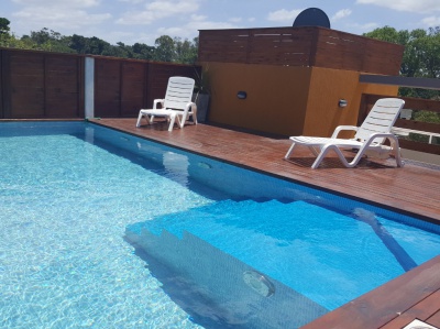El complejo cuenta con pileta climatizada en la terraza y estacionamiento al aire libre.